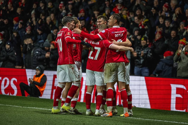 A jogar em casa, o Wrexham foi melhor durante toda a primeira parte, e materializou o domínio no encontro aos 37 minutos, por intermédio do defesa neozelandês Liberato Cacace, com o médio inglês Oliver Rathbone a ampliar a vantagem apenas três minutos depois.
